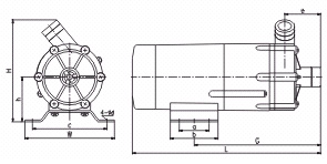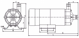 【MP型塑料微型磁力驅(qū)動循環(huán)泵】安裝尺寸圖: