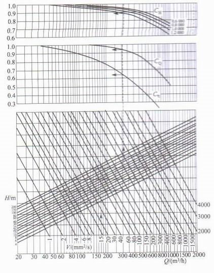 當(dāng)被液體的粘度增大時,水利摩擦損失也隨之增大,QH曲線下移,即泵的流量和揚(yáng)程均下降,但泵的關(guān)閉揚(yáng)程幾乎不變,同時,泵的圓盤摩擦損失增加,泵的輸入功率增大,泵的效率急劇下降。